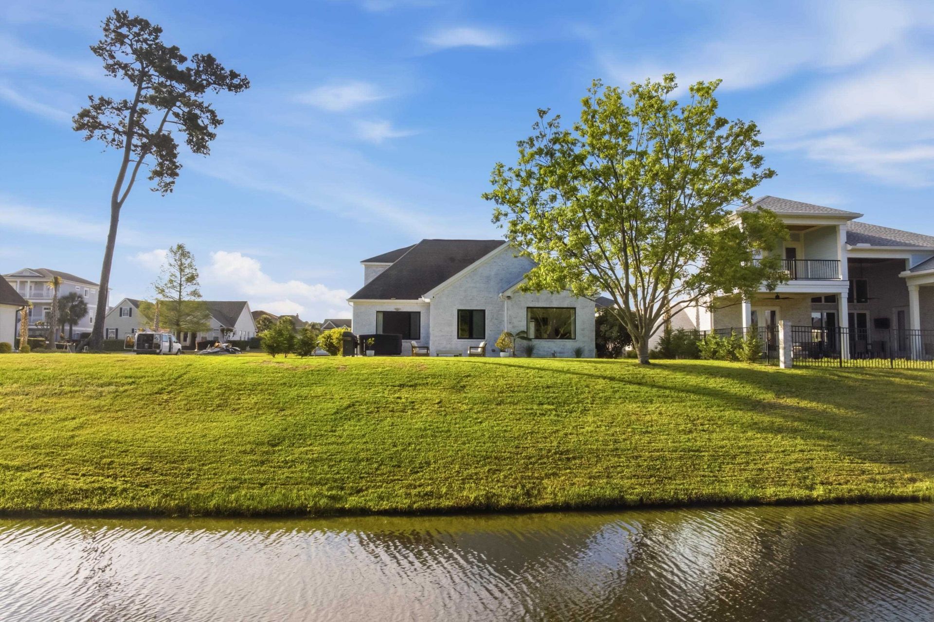 This home is different, and you feel it the moment you walk in. 987 Shipmaster Avenue is a custom renovated home designed to stand apart. Tucked inside one of Myrtle Beachs most sought-after Intracoastal Waterway communities, it blends modern elegance with a level of finish and intention that is rarely seen in this market. Set in the heart of Carolina Forest, just minutes from top-rated schools, shopping, dining, and everyday conveniences, the location offers both accessibility and a true sense of retreat. Inside, the difference is in the details. Natural light pours through custom European windows, creating a warm, elevated atmosphere throughout. Wide plank European white oak flooring runs seamlessly across the main living areas, setting a calm and cohesive foundation. The living room centers around a sleek veneer plaster fireplace that feels subtle, modern, and refined, while Semco microcement finishes in the bathrooms and on countertops bring a smooth, contemporary edge you will not find in typical homes. The kitchen carries that same intentional design. Natural wood paneling, clean lines, and minimalist elegance come together to create a space that is both striking and highly functional. Step outside and the feeling continues. Peaceful pond views, a wooded backdrop, and a mature pecan tree create a setting that feels private and grounded. There is also ample space to design and build a pool, giving you the opportunity to fully lean into the outdoor lifestyle. Located in Carolina Waterway Plantation, this gated custom home community offers a private boat launch to the Intracoastal Waterway, a community pool, tennis and pickleball courts, a playground, and more. Whether it is quiet mornings by the water or active weekends, the lifestyle here adapts to you. 987 Shipmaster Avenue is not trying to be like anything else on the market, because it is not. It is a home for someone who values design, appreciates quality, and wants something that simply feels different.